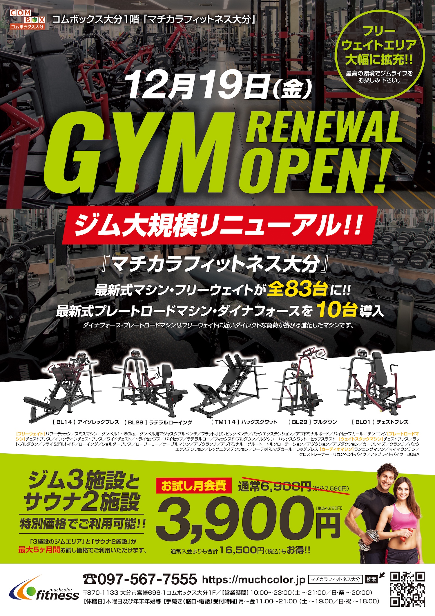 ジム大規模リニューアル(12月19日)のお知らせ