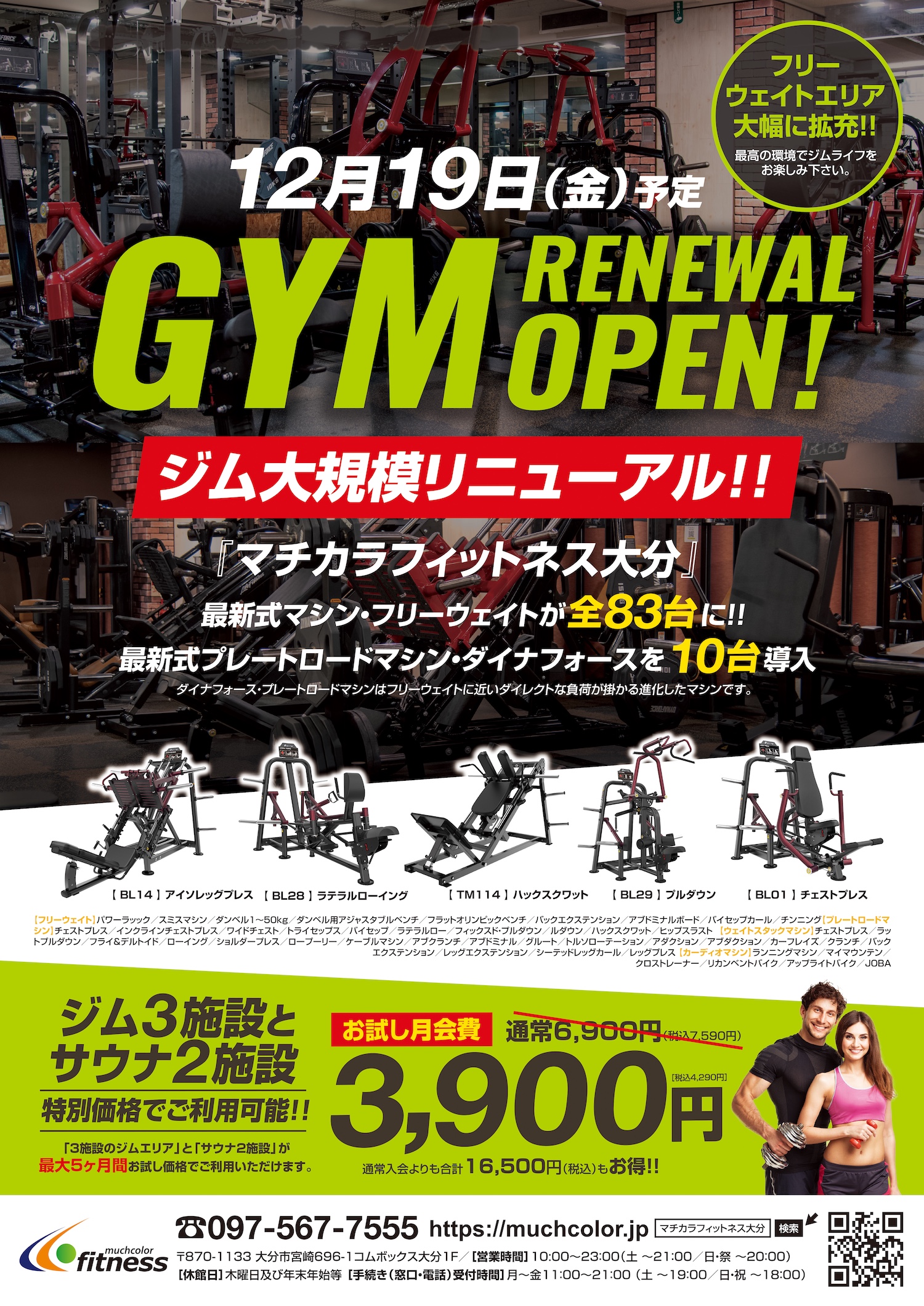 ジム大規模リニューアル(12月19日予定)のお知らせ