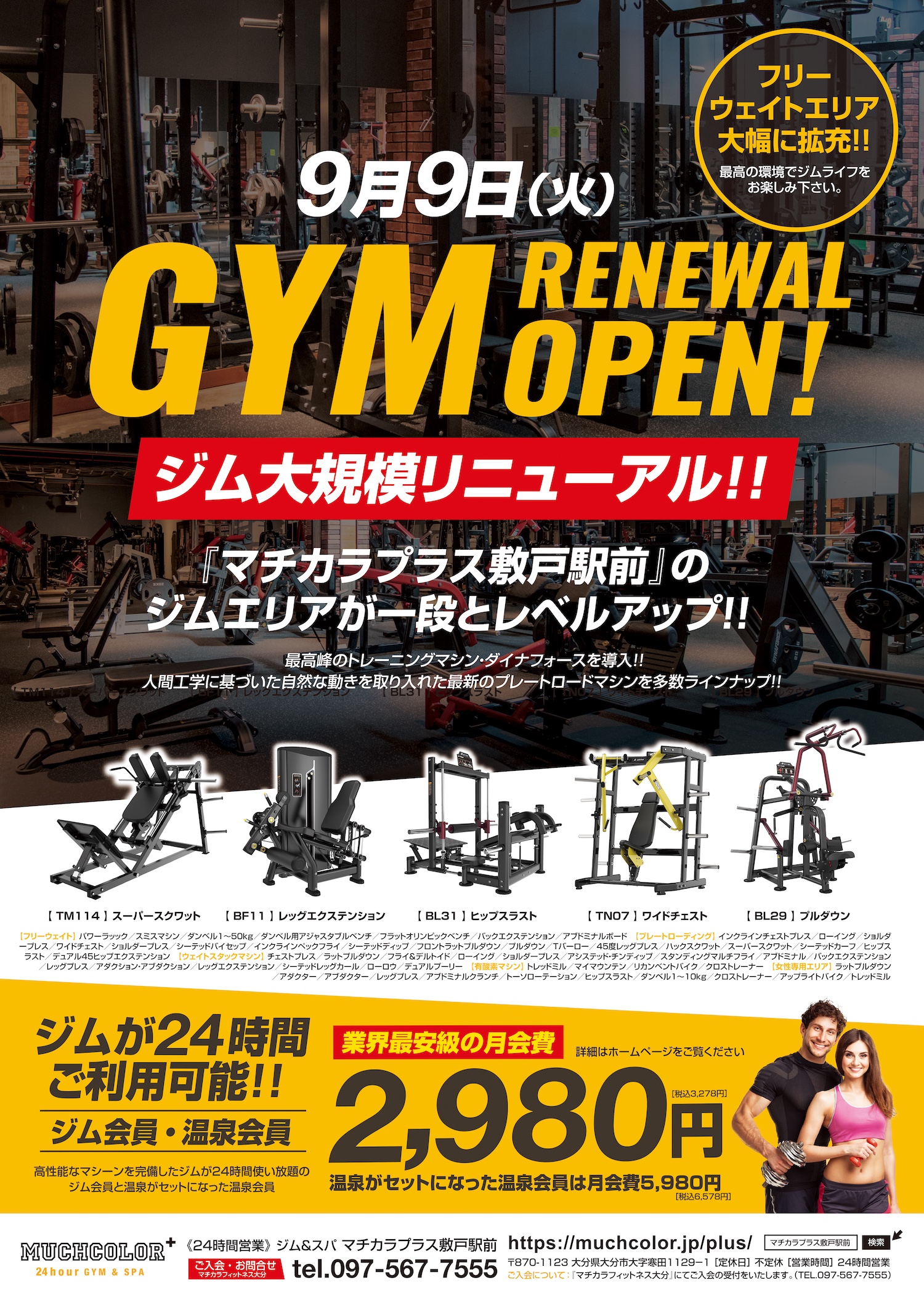 9/9(火)にジムを大規模リニューアル!